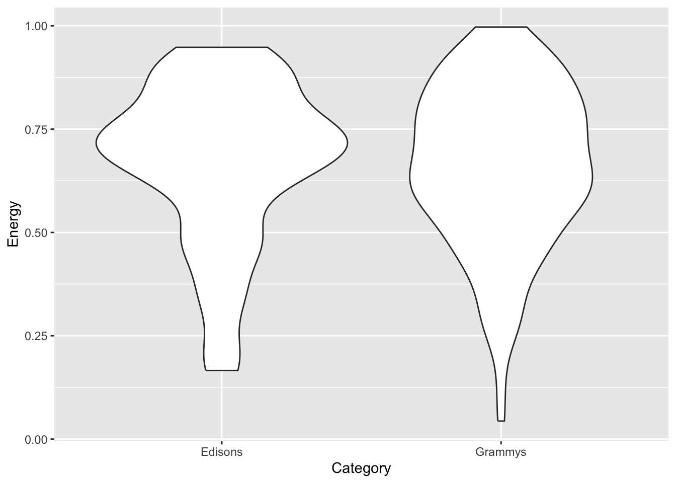 awards |>ggplot(aes(x = Category, y = Energy)) +geom_violin()